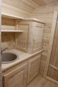 Для удобства размещения бытовых мелочей обязательно добавьте небольшие шкафчики с дверцами (2 шт) - 15 000 руб и верхние открытые полки (2 шт) - 5 000 руб. Всё необходимое в бане или доме должно быть всегда под рукой!